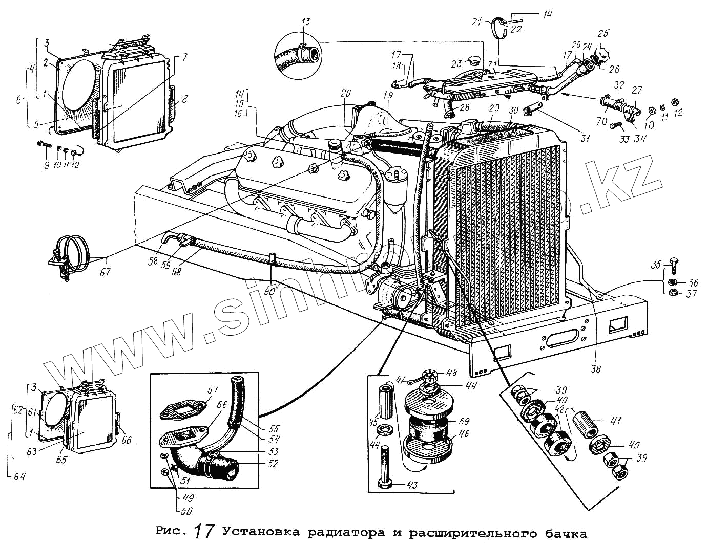Каталог запасных частей к технике: МАЗ-54323. Установка радиатора и расширительного бачка