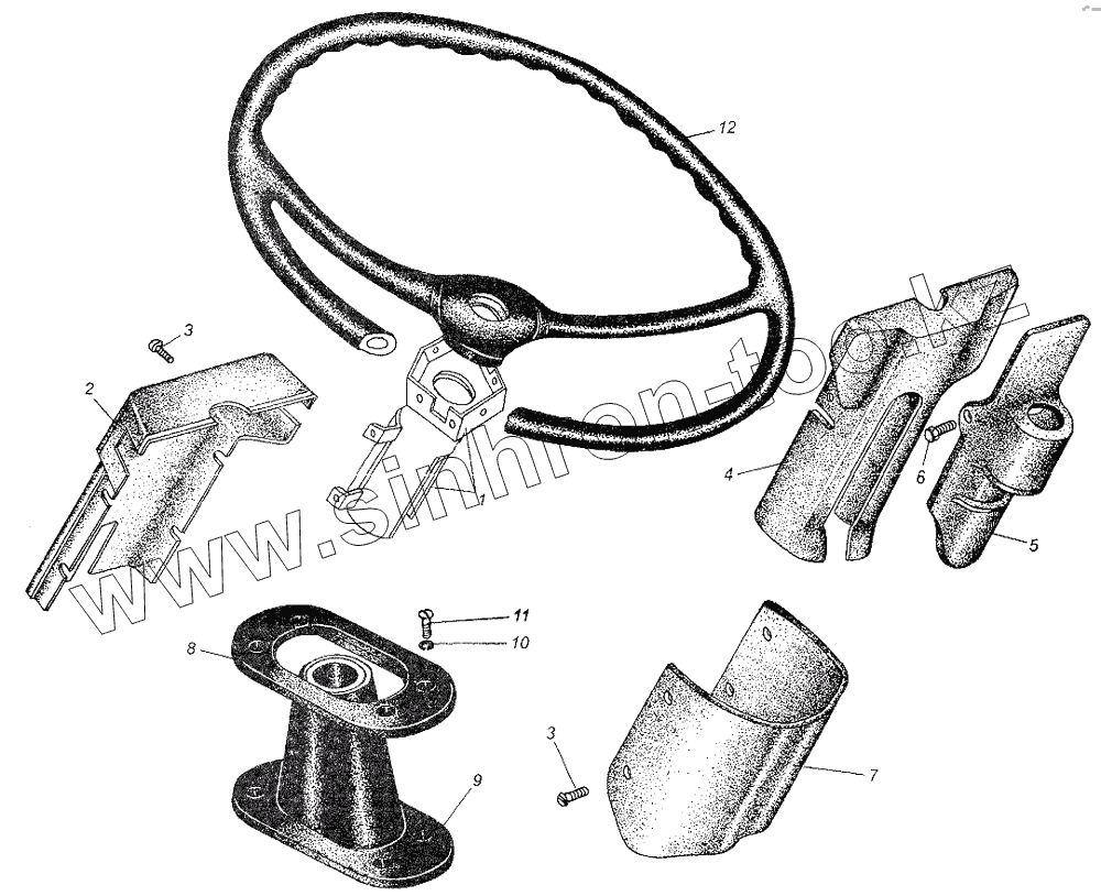Каталог запасных частей к технике: МАЗ-54326. Крепление кожухов на рулевой колонке
