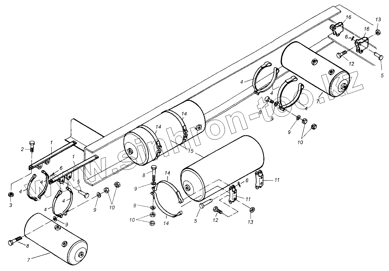 Каталог запасных частей к технике: МАЗ-54326. Крепление ресиверов МАЗ-54326