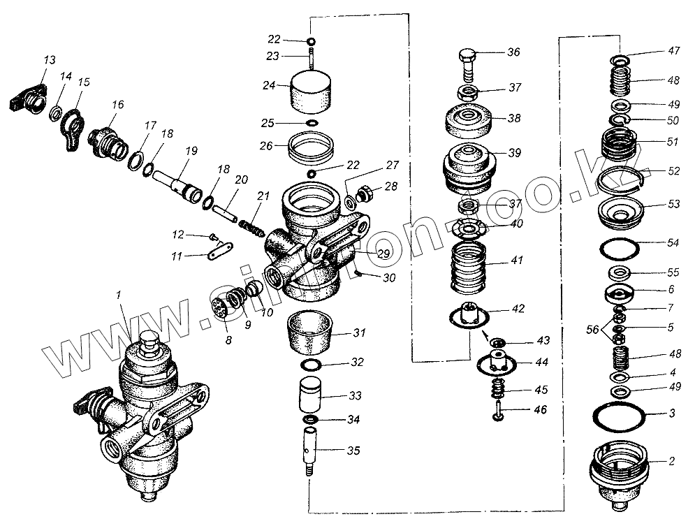 Каталог запасных частей к технике: МАЗ-54326. Регулятор давления пневмотормозов