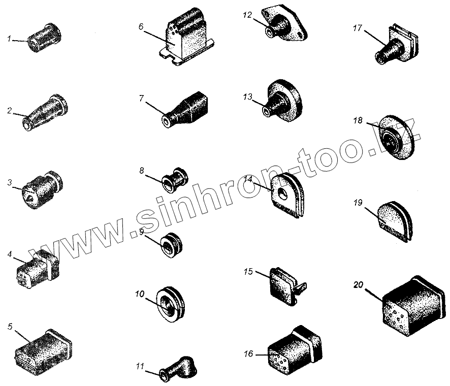 Каталог запасных частей к технике: МАЗ-54326. Резинотехнические изделия электрооборудования