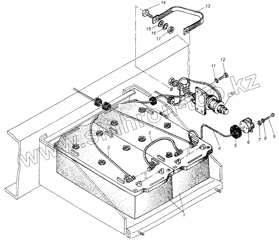 Каталог запасных частей к технике: МАЗ-54326. Установка аккумуляторных батарей