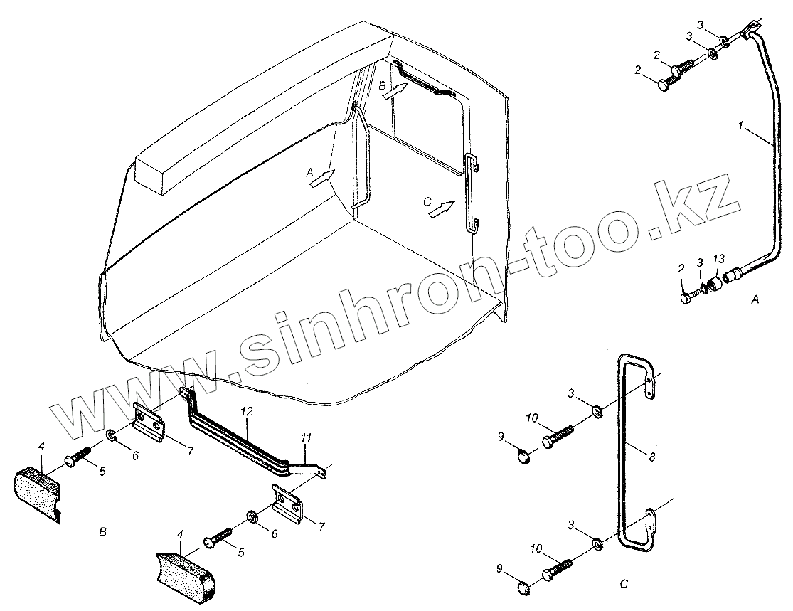 Каталог запасных частей к технике: МАЗ-54326. Установка поручней в кабине