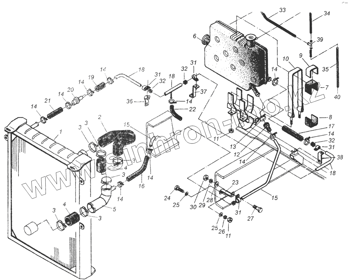 Каталог запасных частей к технике: МАЗ-54326. Установка трубопроводов системы охлаждения