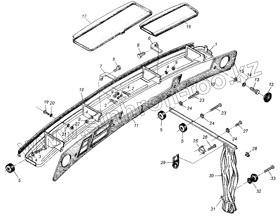 Каталог запасных частей к технике: МАЗ-54326. Установка вещевой полки и шторки