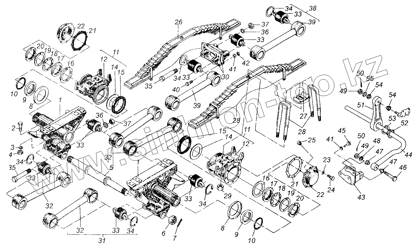 Каталог запасных частей к технике: МАЗ-54326. Установка задней подвески МАЗ-64226