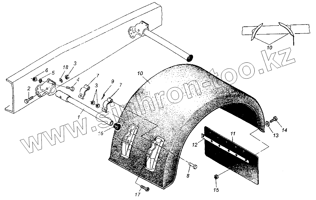 Каталог запасных частей к технике: МАЗ-54326. Установка задних крыльев и брызговиков
