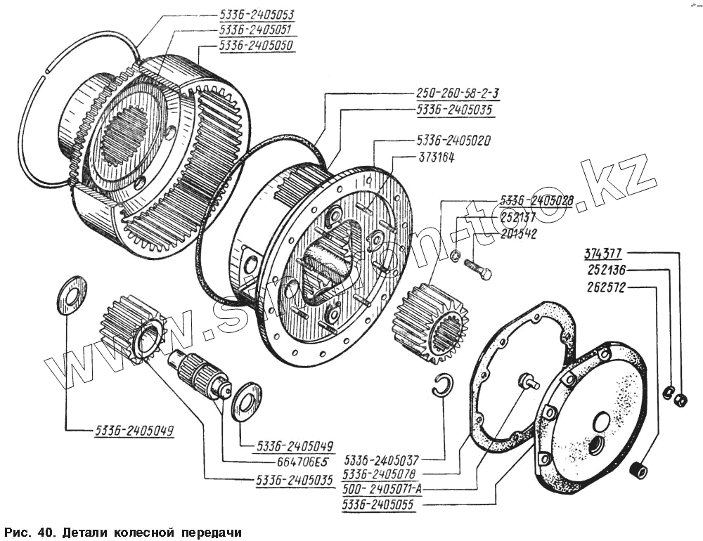 Каталог запасных частей к технике: МАЗ-54328. Детали колесной передачи