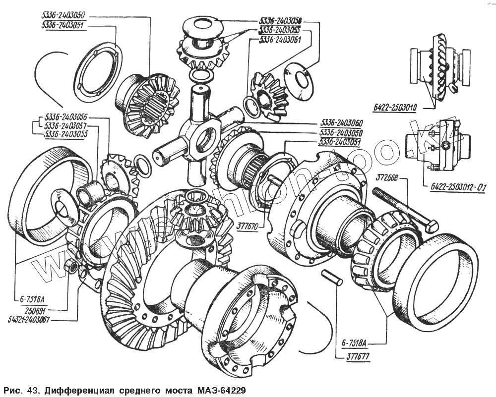 Каталог запасных частей к технике: МАЗ-54328. Дифференциал среднего моста МАЗ-64229