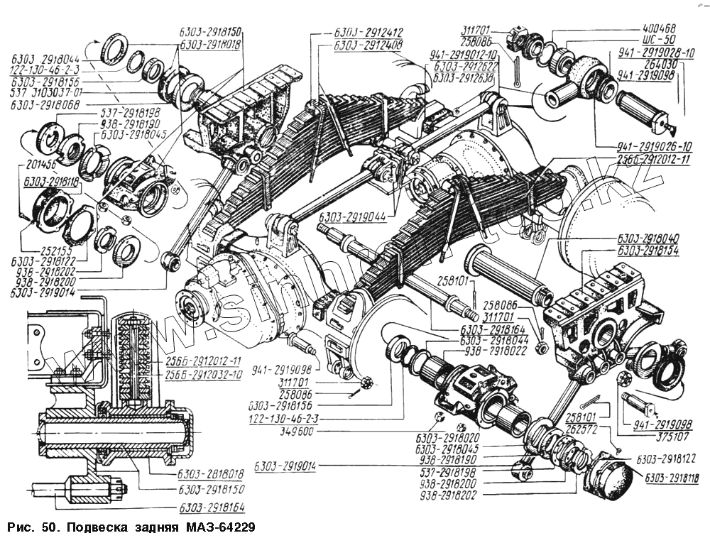 Каталог запасных частей к технике: МАЗ-54328. Подвеска задняя МАЗ-64229