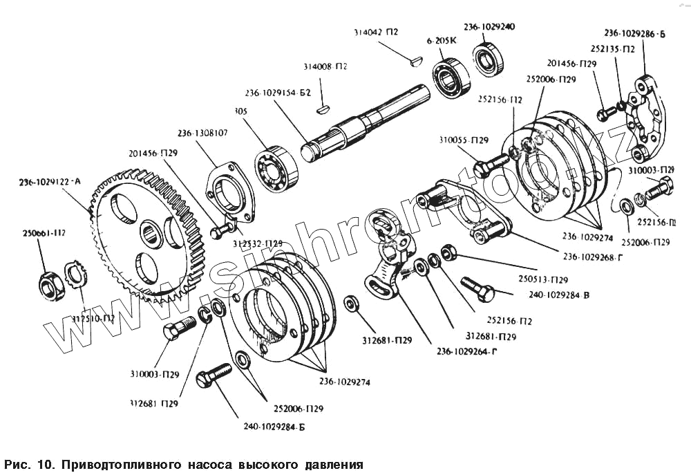 Каталог запасных частей к технике: МАЗ-54328. Привод топливного насоса высокого давления