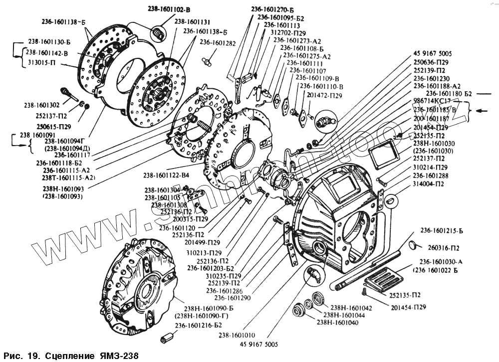 Каталог запасных частей к технике: МАЗ-54328. Сцепление ЯМЗ-238