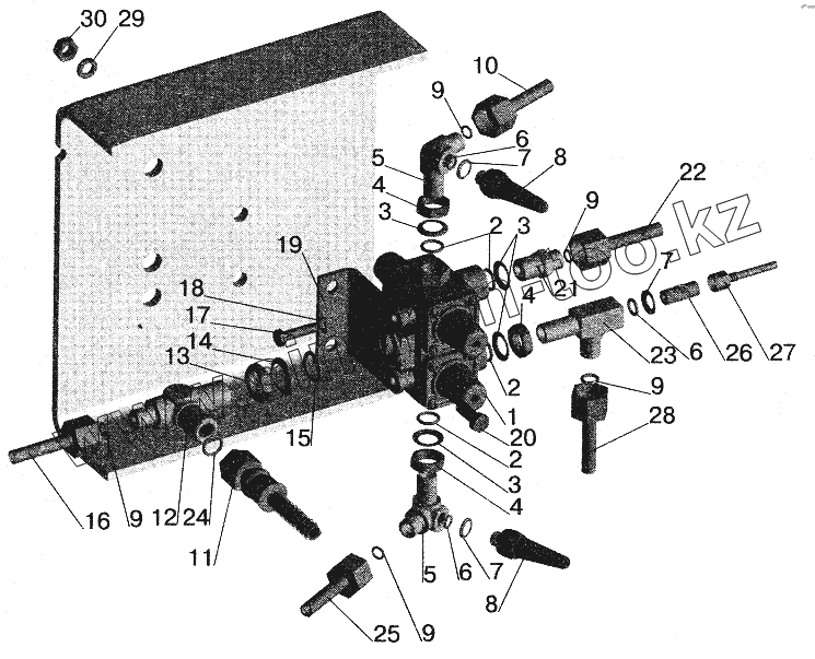 Каталог запасных частей к технике: МАЗ-5432. Крепление четырехконтурного клапана МАЗ-551605, 551603