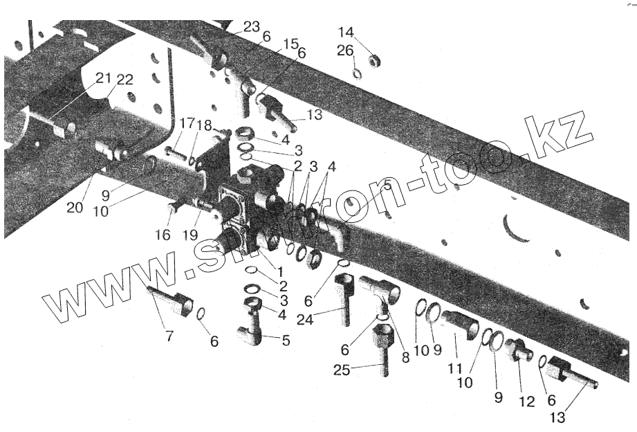 Каталог запасных частей к технике: МАЗ-5432. Крепление четырехконтурного клапана МАЗ-555102