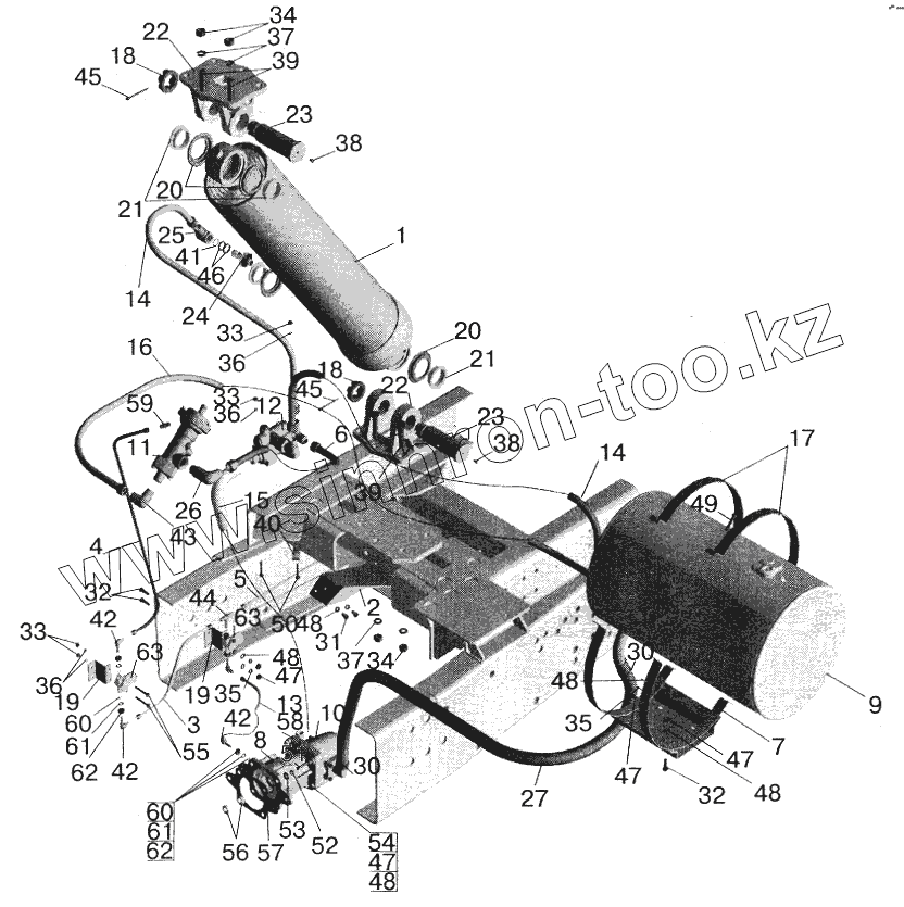 Каталог запасных частей к технике: МАЗ-5432. Механизма подъема платформы МАЗ-5516