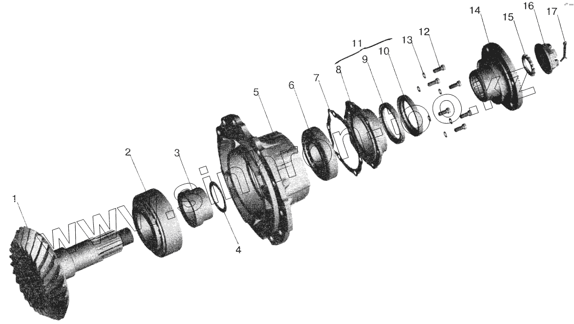 Каталог запасных частей к технике: МАЗ-5432. Мост задний МАЗ-543208. Шестерня ведущая