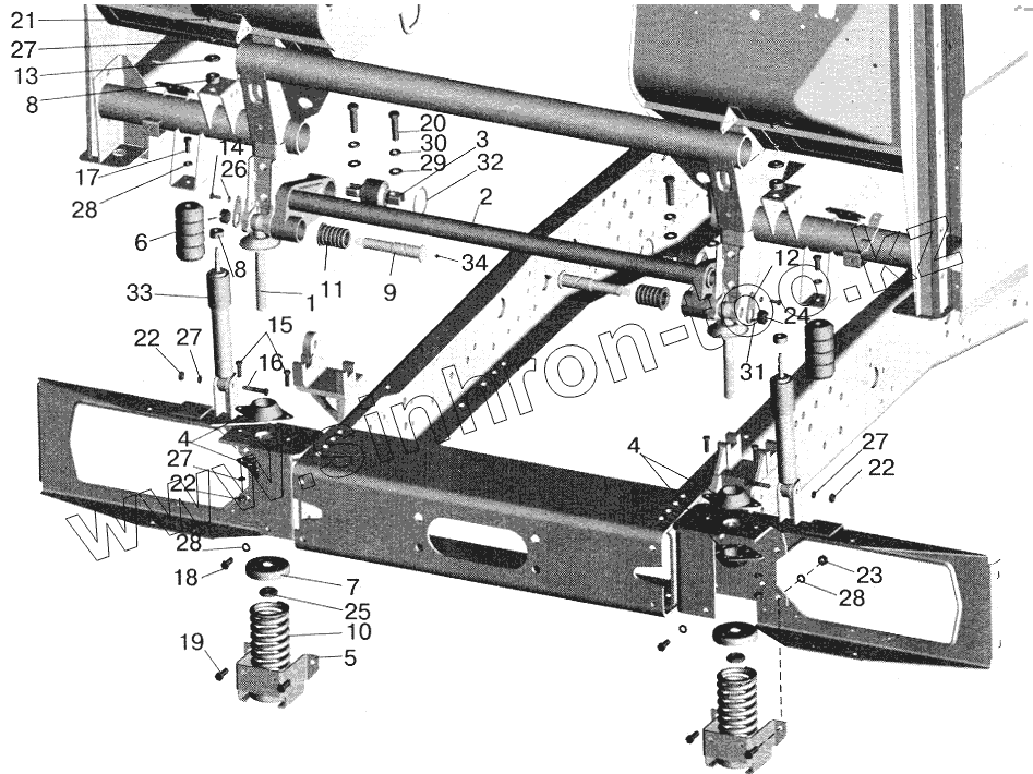 Каталог запасных частей к технике: МАЗ-5432. Переднее подрессоривание большой кабины