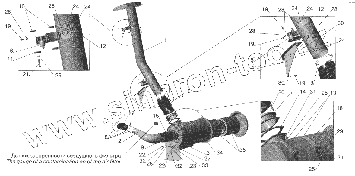 Каталог запасных частей к технике: МАЗ-5432. Система питания воздухом МАЗ-551605