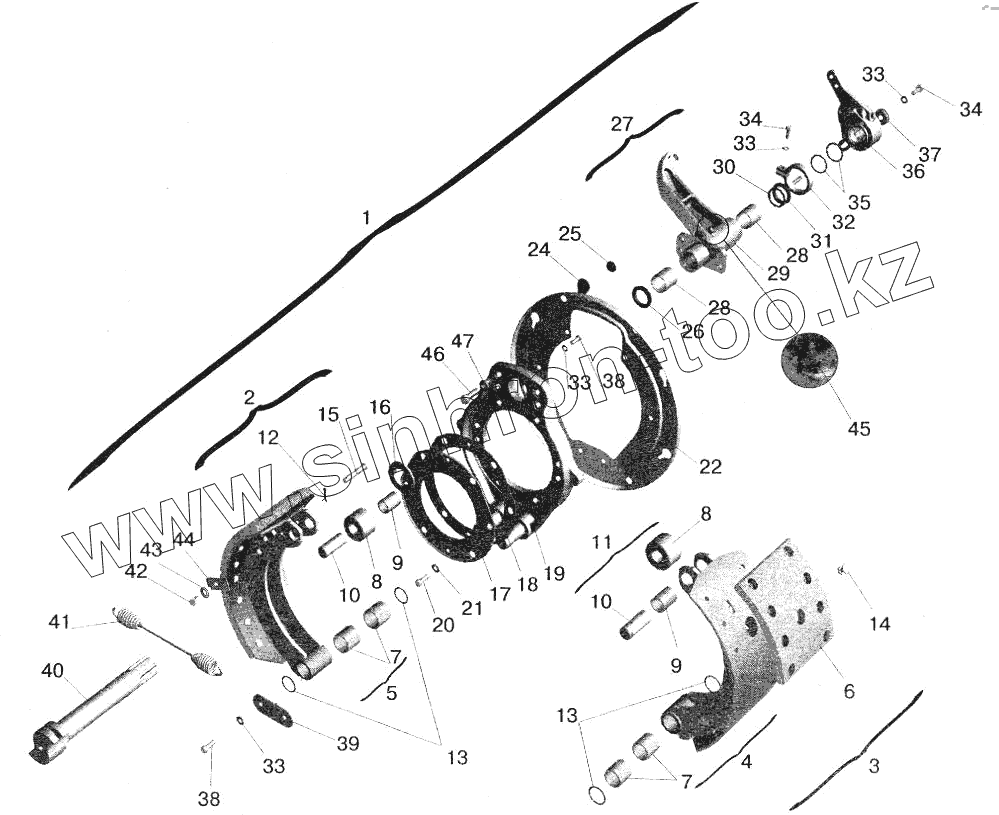 Каталог запасных частей к технике: МАЗ-5432. Тормозной механизм передних колес