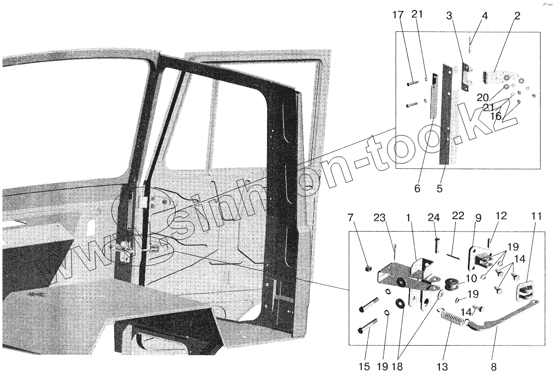 Каталог запасных частей к технике: МАЗ-5432. Установка ограничителя и петель двери