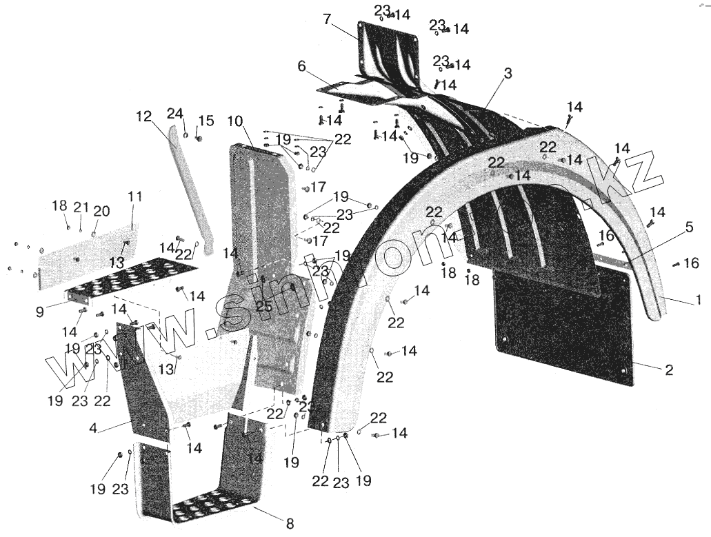 Каталог запасных частей к технике: МАЗ-5432. Установка оперения на малую кабину