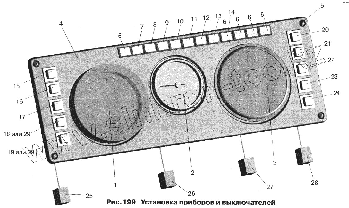 Каталог запасных частей к технике: МАЗ-5432. Установка приборов и выключателей
