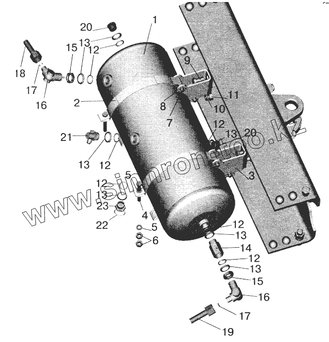 Каталог запасных частей к технике: МАЗ-5432. Установка ресивера и присоединительной арматуры МАЗ-555102