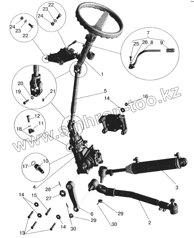 Каталог запасных частей к технике: МАЗ-5432. Установка рулевой колонки и рулевого механизма