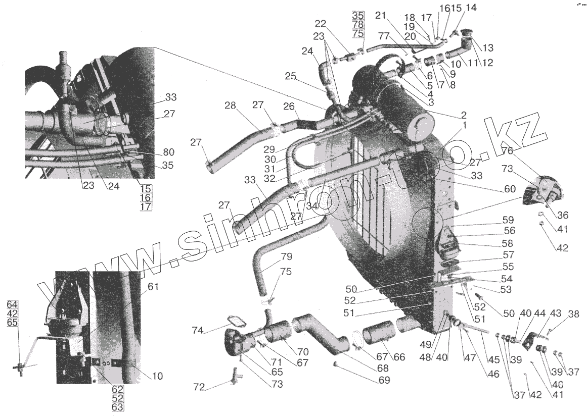 Каталог запасных частей к технике: МАЗ-5432. Установка системы охлаждения МАЗ-642208, 543208
