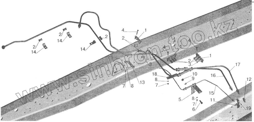 Каталог запасных частей к технике: МАЗ-5432. Установка топливопроводов МАЗ-555102 (без подогревателя)