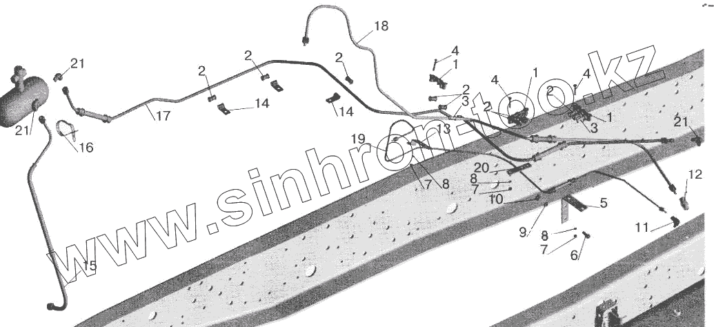 Каталог запасных частей к технике: МАЗ-5432. Установка топливопроводов МАЗ-555102 (с подогревателем)