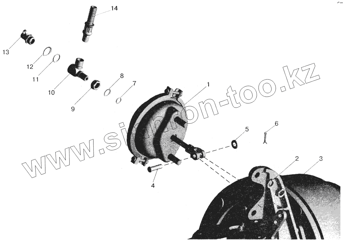Каталог запасных частей к технике: МАЗ-5432. Установка тормозных камер и присоединительной арматуры