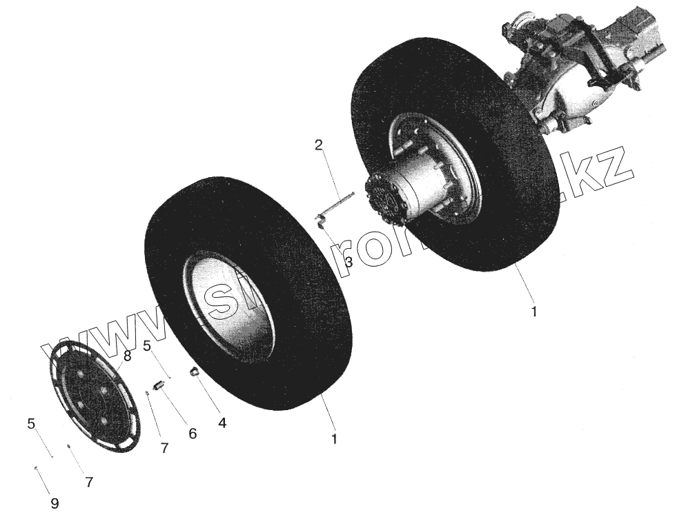 Каталог запасных частей к технике: МАЗ-5432. Установка задних колес