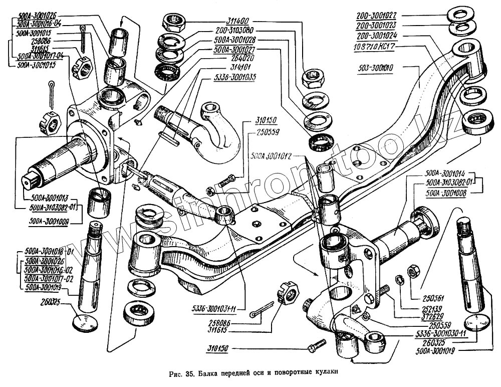 Каталог запасных частей к технике: МАЗ-5433. Балка передней оси и поворотные кулаки
