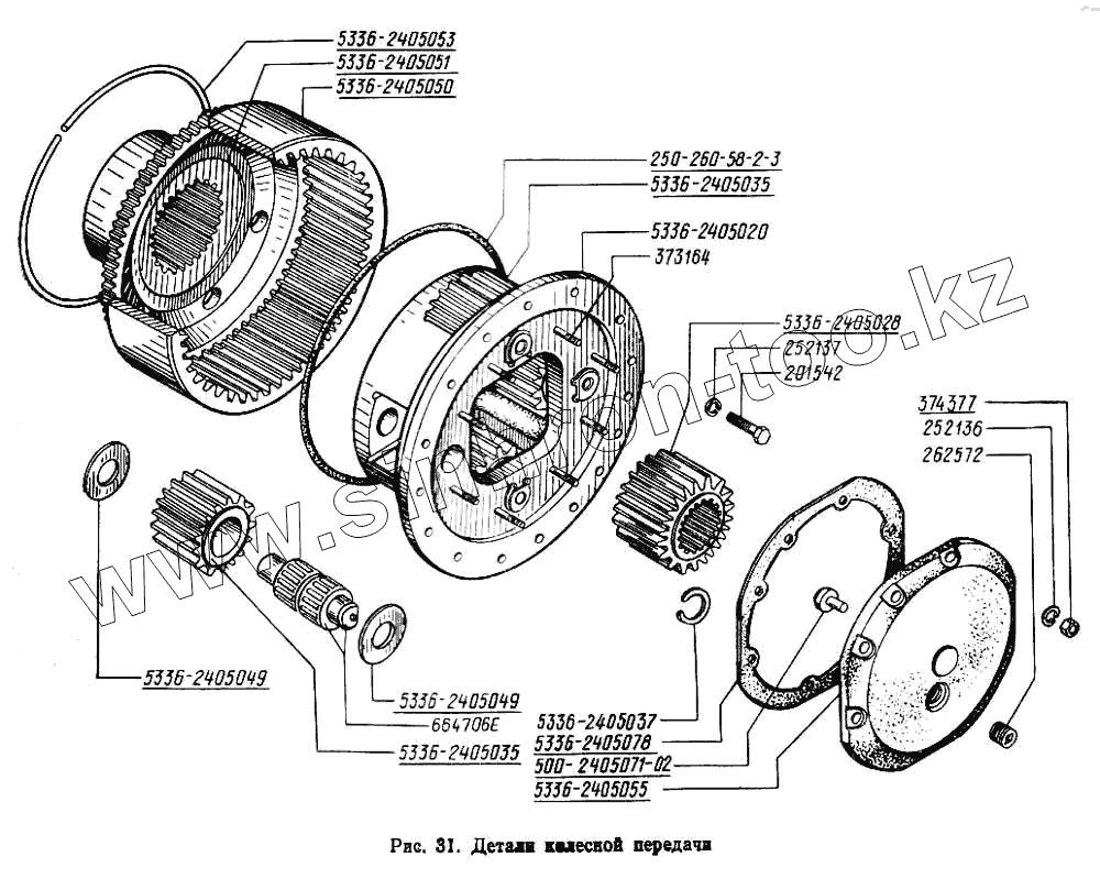Каталог запасных частей к технике: МАЗ-5433. Детали колесной передачи