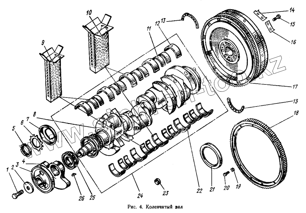 | 24 | 236-1000107-В4 | Вал коленчатый со сталебронзовыми коренными и шатунными вкладышами (комплект) | |