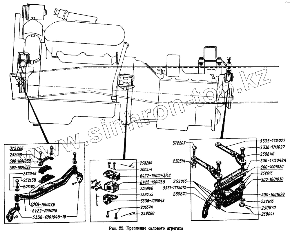 Каталог запасных частей к технике: МАЗ-5433. Крепление силового агрегата