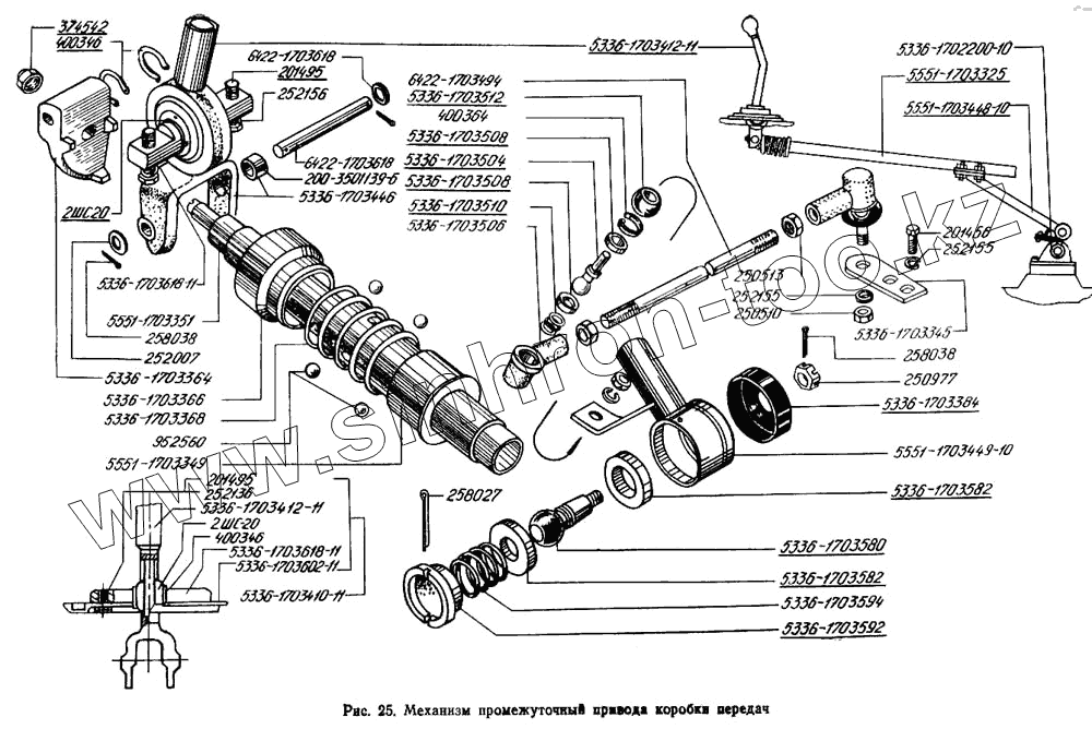 Каталог запасных частей к технике: МАЗ-5433. Механизм промежуточный привода коробки передач