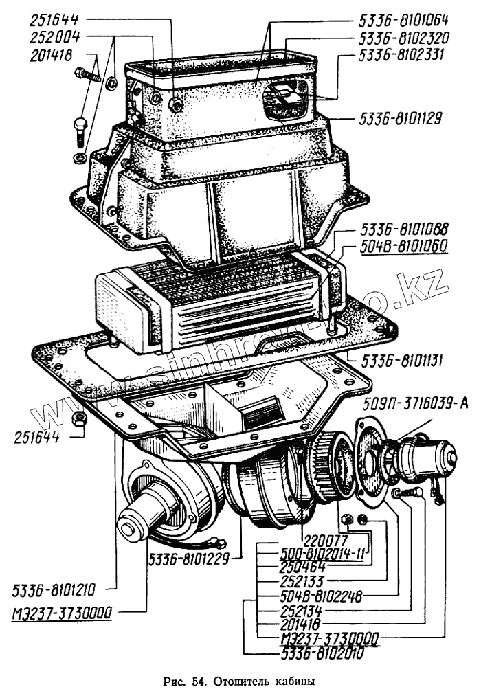 Каталог запасных частей к технике: МАЗ-5433. Отопитель кабины