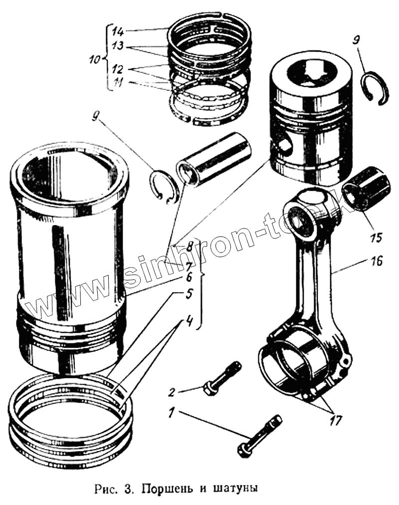 Каталог запасных частей к технике: МАЗ-5433. Поршень и шатуны