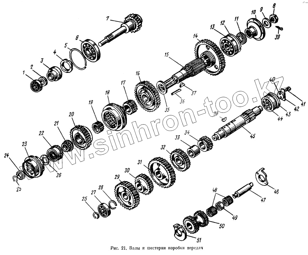 Каталог запасных частей к технике: МАЗ-5433. Валы и шестерни коробки передач