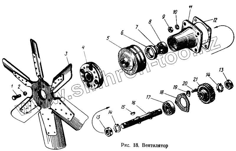 Каталог запасных частей к технике: МАЗ-5433. Вентилятор