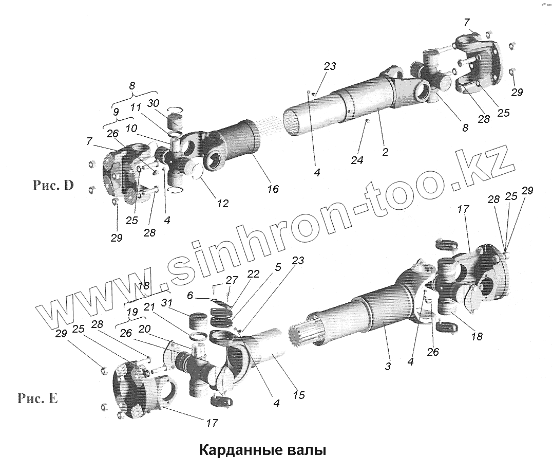 Каталог запасных частей к технике: МАЗ-543403, 641705, 641708. Карданные валы (2)