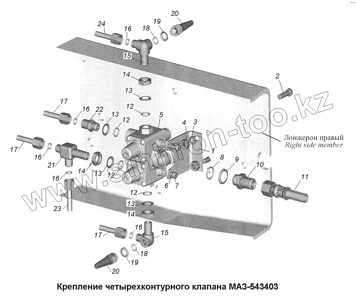 Каталог запасных частей к технике: МАЗ-543403, 641705, 641708. Крепление четырехконтурного клапана МАЗ-543403