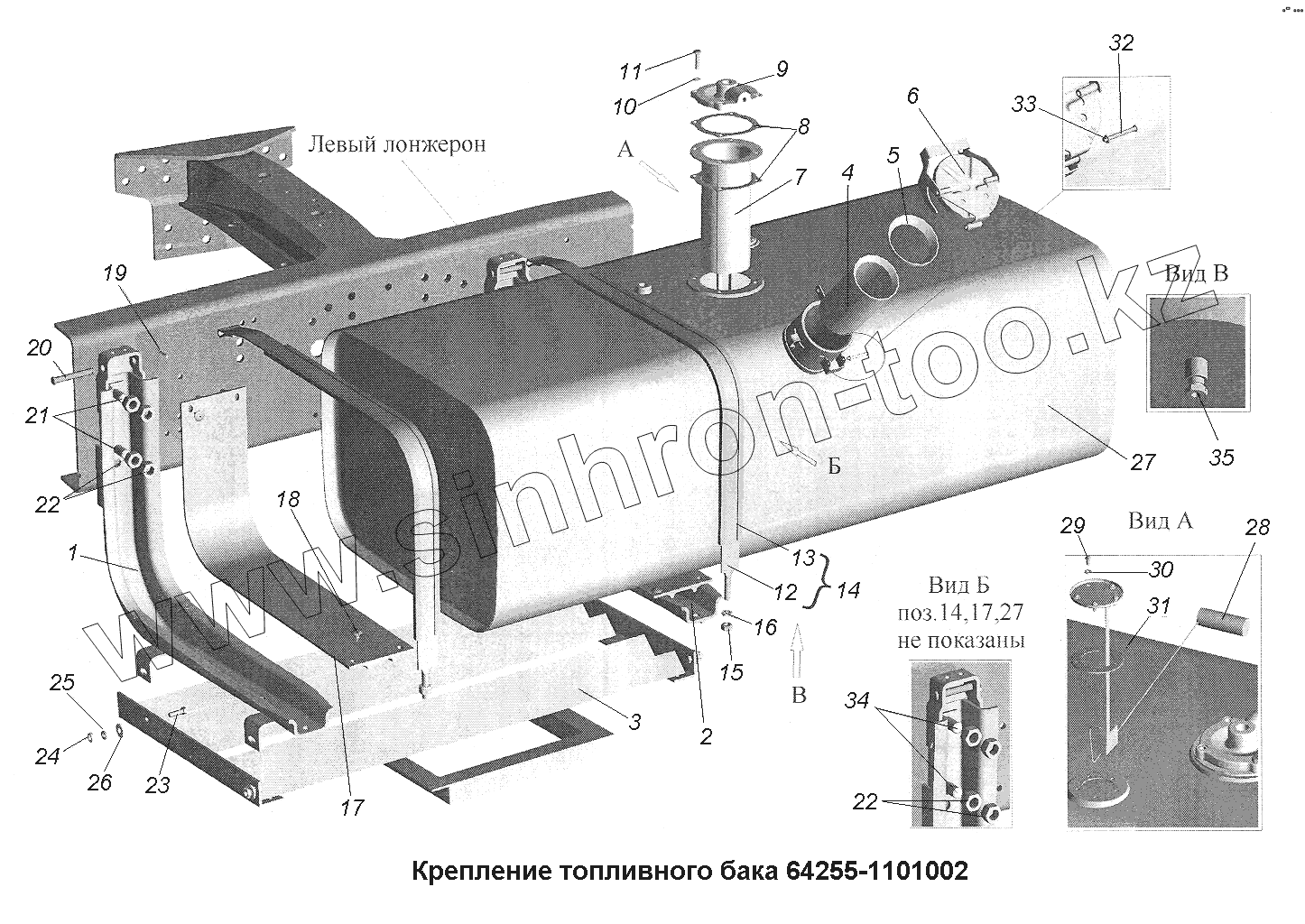 Каталог запасных частей к технике: МАЗ-543403, 641705, 641708. Крепление топливного бака 64255-1101002