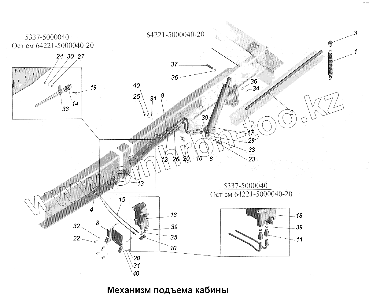 Каталог запасных частей к технике: МАЗ-543403, 641705, 641708. Механизм подъема кабины
