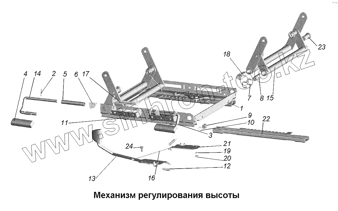 Каталог запасных частей к технике: МАЗ-543403, 641705, 641708. Механизм регулирования высоты