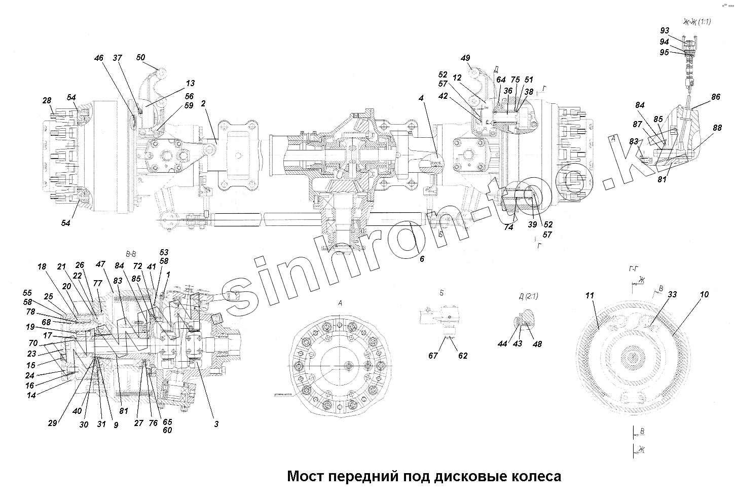 Каталог запасных частей к технике: МАЗ-543403, 641705, 641708. Мост передний под дисковые колеса