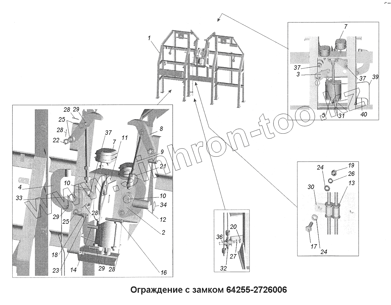 Каталог запасных частей к технике: МАЗ-543403, 641705, 641708. Ограждение с замком 64255-2726006