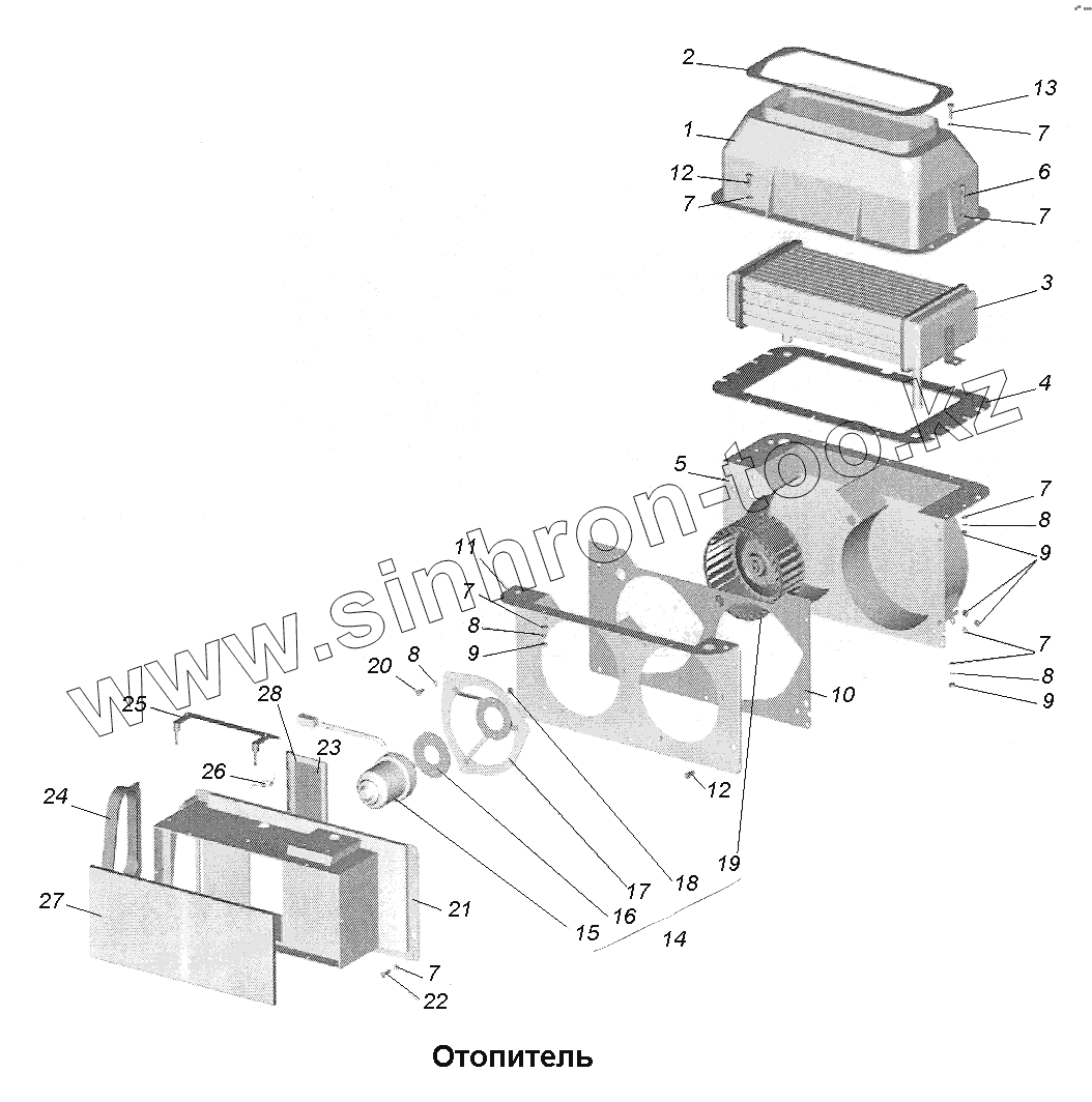 Каталог запасных частей к технике: МАЗ-543403, 641705, 641708. Отопитель